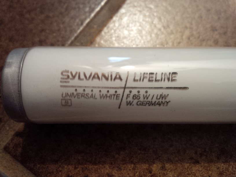 Ausgangspunkt war eine Feuchtraum-Wannenleuchte in meinem Wasch- und Heizungskeller mit einer alten T12-Leuchtstoffröhre Sylvania Lifeline Universal White F 65W. "Universal White" ist ein Neutralweiß, eine genauere Farbtemperatur oder gar ein CRI ist nicht aufgedruckt. Die Helligkeit war völlig ausreichend, aber zwei Dinge haben mich massiv daran gestört: zum Starten braucht das Ding kalt ca. 5 Sekunden - eine gefühlte Ewigkeit. Und die Farbwiedergabe ist einfach nur unterirdisch. Die ist so schlecht, dass es mir mit diesem Licht nicht möglich ist, dunkle Socken zu sortieren. Dafür muss ich immer eine Glühlampe anmachen, die es an einer anderen Stelle in dem Raum noch gibt.
