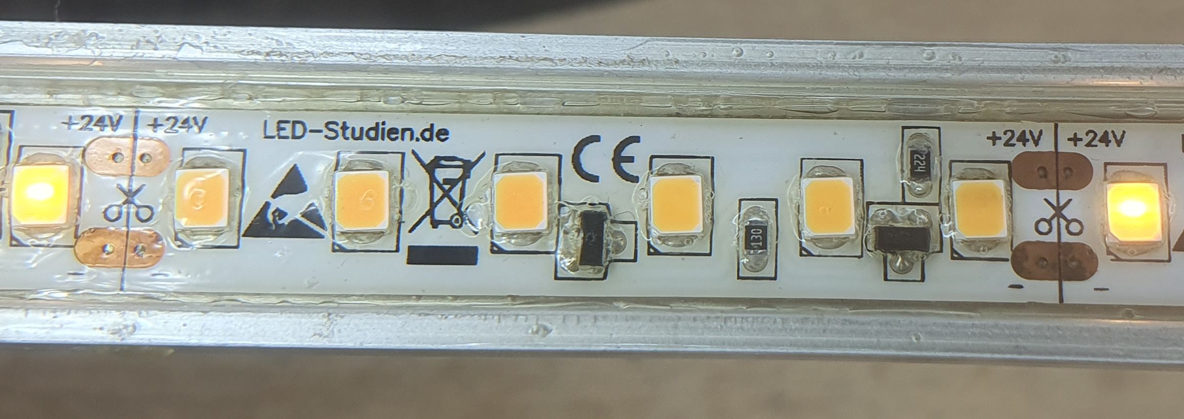 Ich kann mir aber nicht vorstellen, dass bei den Lacken ein großer Unterschied existiert. Immerhin ist so ein Lack dazu gedacht, einen Parkettboden zu versiegeln. Nach dem Aushärten kann man drauf rum laufen ohne dass irgendwas passiert und man kann den Boden nass wischen ohne dass das Holz aufquillt. Warum sollte das bei LED-Streifen anders sein?