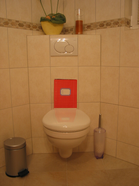 Und natürlich auch daran, das die Wände mit Fliesen bis zur Decke beklebt sind und diese Fliesen sehr hell sind.