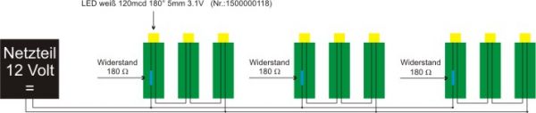 Und die anderen 29 Leds baust Du genauso auf und schließt diese ebenfalls so ans Netzgerät an.