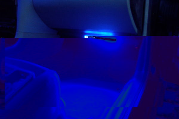 Fußraumbeleuchtung mit 20 x Superflux: Handschuhfach mit 6 x Superflux: Endstufenbeleuchtung mit einer pulsierenden 1Watt Luxeon: Kofferraumbeleuchtung mit 10 x Superflux: Türgriffmulde mit je einer 5mm LED: Weitere Umbauten vielleicht nächste Woche.