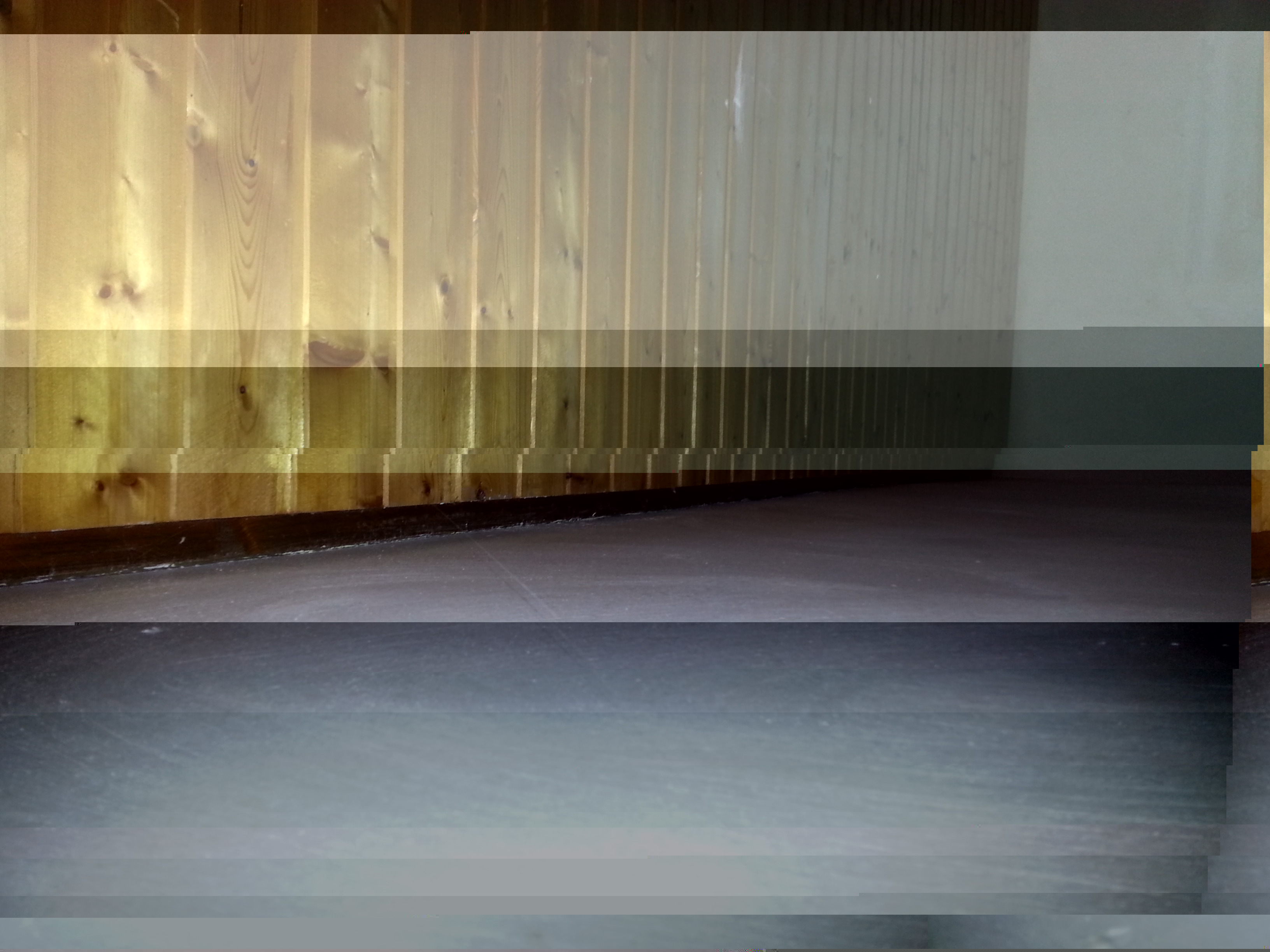 Aktuell befindet sich noch eine braune Holzdecke (siehe Foto) an der Decke, die jedoch weiß gestrichen werden soll.