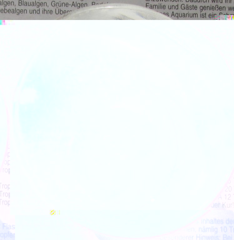 Hier ein Foto eines flammpolierten 10 cm-Stücks des Endlighten-Materials, Aufnahme von oben mit Blitz, das Endlighten-Stück auf einen Beipackzettel gestellt: