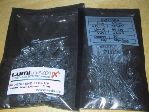 Dieser Test verglicht 2 UV LEDs von lumitronix und 2 UV LEDs von *********