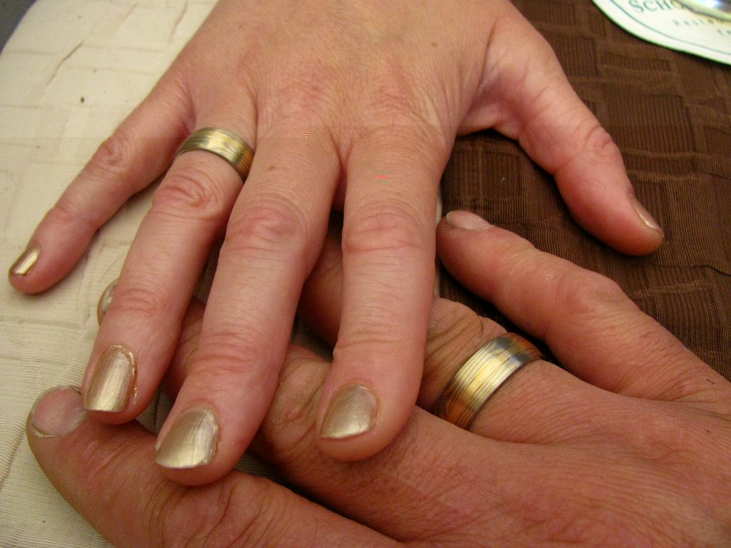 ...bei mir is es in 15 Tagen auch soweit, die Ringe sind aus Edelstahl, schlicht und robust :mrgreen: