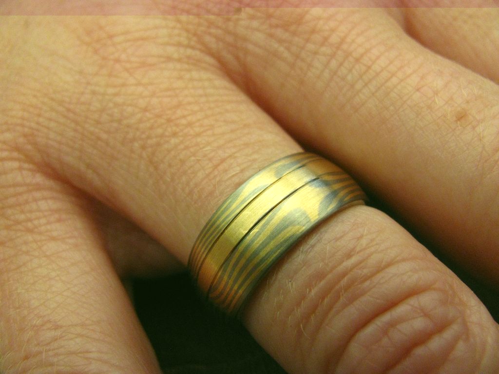 Sodele,wie versprochen...................unsere Ringe aus Rosè-/Graugold nach Damaszener Art gefaltet und verschmiedet.