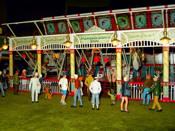 Am Modell leuchten 1493 LEDs. Die Gelben, Grünen und Violetten LEDs sind von LUMITRONIX. Ich habe 218 Stunden gebaut Das Modell hat den Maßstab 1:20. Meine gesammte Kirmes baue ich am 1.6. im Bero-Center in Oberhausen auf. Die Ausstellung geht bis zum 23.6.2007 und ist 21 Quatratmeter groß. Alle sind eingeladen zu einem Besuch.