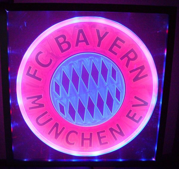 Das Emblem ist 50 * 50 cm groß und besteht aus drei einzeln gravierten Plexi-Platten.