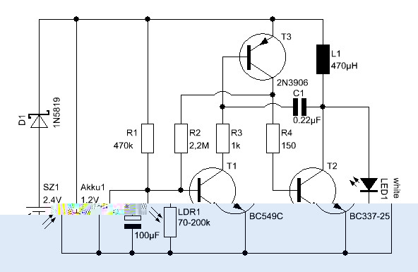 Diese Schaltung hat bereits 2007 sehr gute Dienste erwiesen. Die LED leuchtet die ganze Nacht, selbst wenn mal ein paar Tage die Sonne nicht scheint. Mal sehen wie sich die neuen LEDs von Nichia machen... (wenn sie denn mal lieferbar sind....)