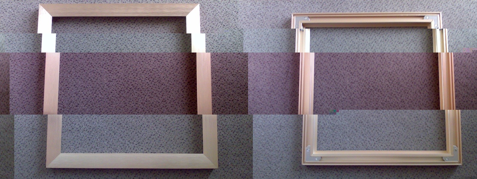 Zuerst ein Bild der Bilderrahmen, welche ein quadratisches Außenmaß von 352mm und eine Höhe von 15mm haben. Glasscheibe, Passepartout und Hartfaserrückwand werden nicht benötigt.