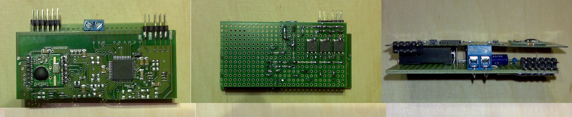 Die Ansteuerung erfolgt per PWM in drei Gruppen. Bisher gibts nur zwei Gruppen, nämlich die beiden Panele überm Fernseher und die beiden über der Couch. Mann kann also die Helligkeit im Raum unterschiedlich aufteilen. Per RFM12 hängt das Ganze in meinem DIY-Hausbus.