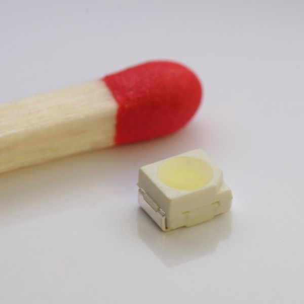 0603 SMD-LED auf einem Streichholzkopf. Der originale Bildausschnitt ist gerade einmal ca. 3-4mm breit. Das soll mir mal einer nachmachen