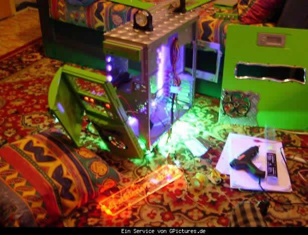 Der Rote Neonstring wird auf Lan´s aktiv (um niemanden zu blenden) und das Grüne Twinnset ist zun "Geil aussehen")