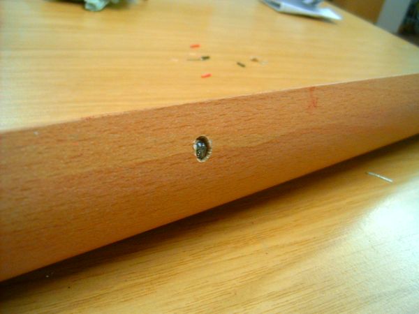 Hier die eingepaßte Led 5´er Bohrer vorgebohrt und mit einem 6´er nachgebohrt. Led eingeklemmt.