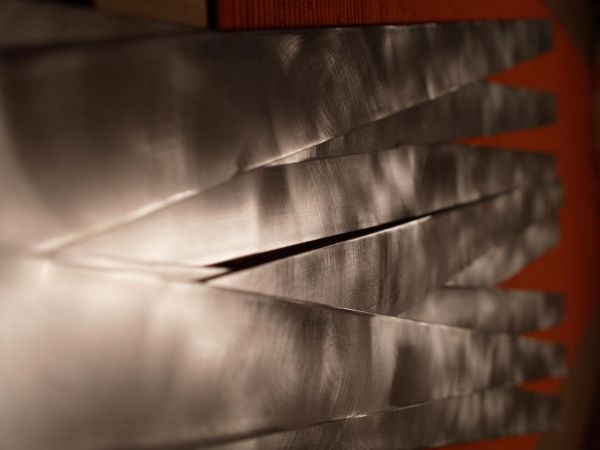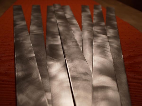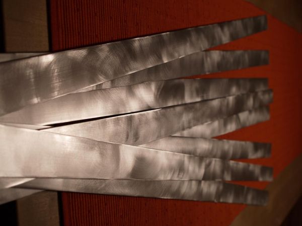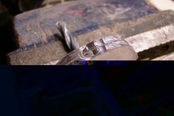 Hat man einmal den dreh raus ist die Schleiferei keine Hexerei mehr. Umdrehung hab ich 600/min gewählt. Bei höheren Drehzahlen wird das ganze zu fein und sieht nicht mehr gut aus. Vorsichtig sollte man nur mit den Enden sein. Da kann schon mal ein Finger oder Fingernagel beim hindrücken dazwischen kommen.