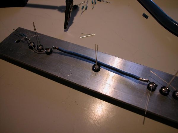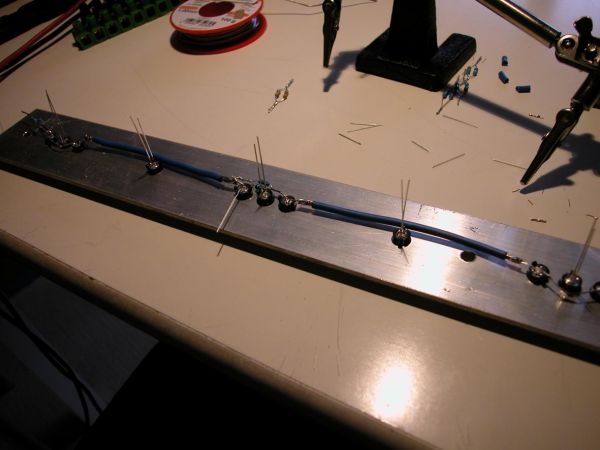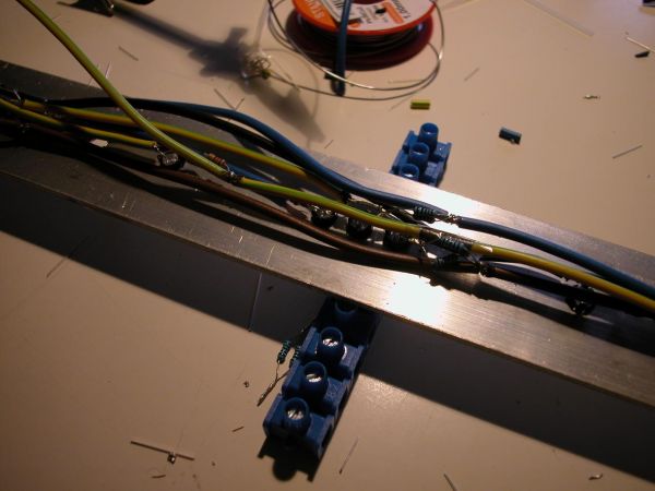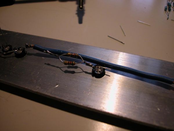 heute hab ich mal ein wenig zum "entspannen" 400 Wiederstände parallel miteinander verlötet. Jetzt hab ich 150x 90 Ohm und 50x 305 Ohm.