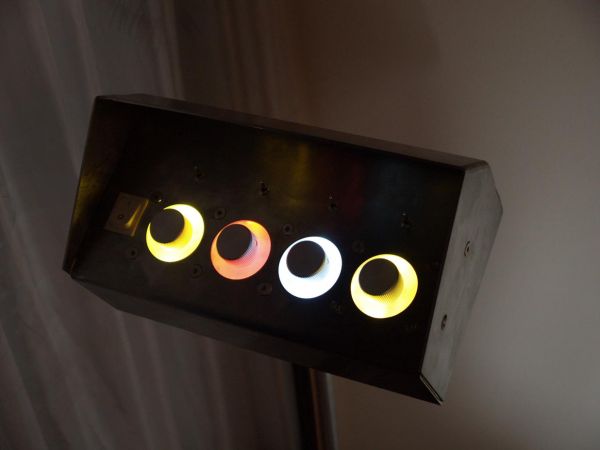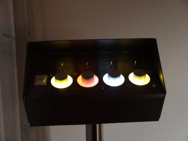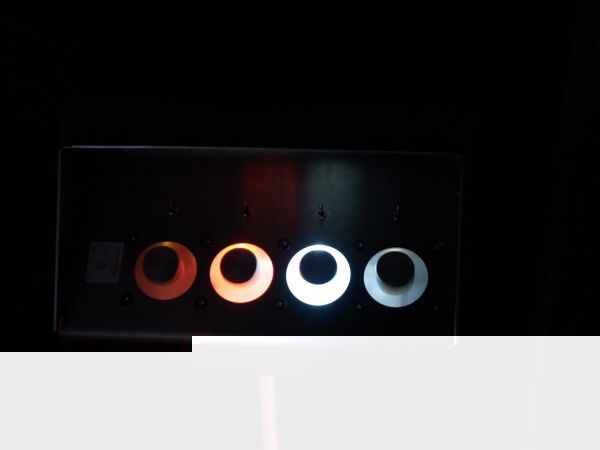 von links nach rechts: orange - warmweiß - weiß - warmweiß. Dieser erste Test zeigte auch, dass sich die Farben an den Leisten spiegeln und somit das Gesamtbild noch zusätzlich abrunden.