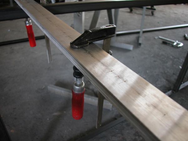 Hier hab ich die Leisten mal mit Schraubzwingen zusammengespannt, um Arbeit zu sparen