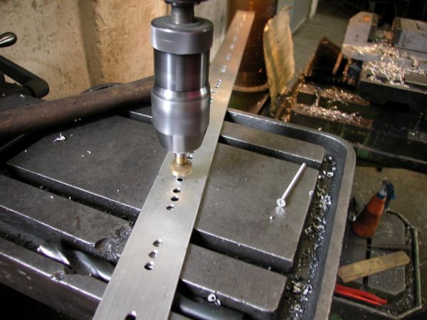 jetzt die Löcher noch ein wenig ansenken. Die Löcher, wo später die Schrauben zum befestigen stecken, wurden stärker angesenkt, damit die 2VA Senkkopfschrauben bündig in der Leiste sitzen