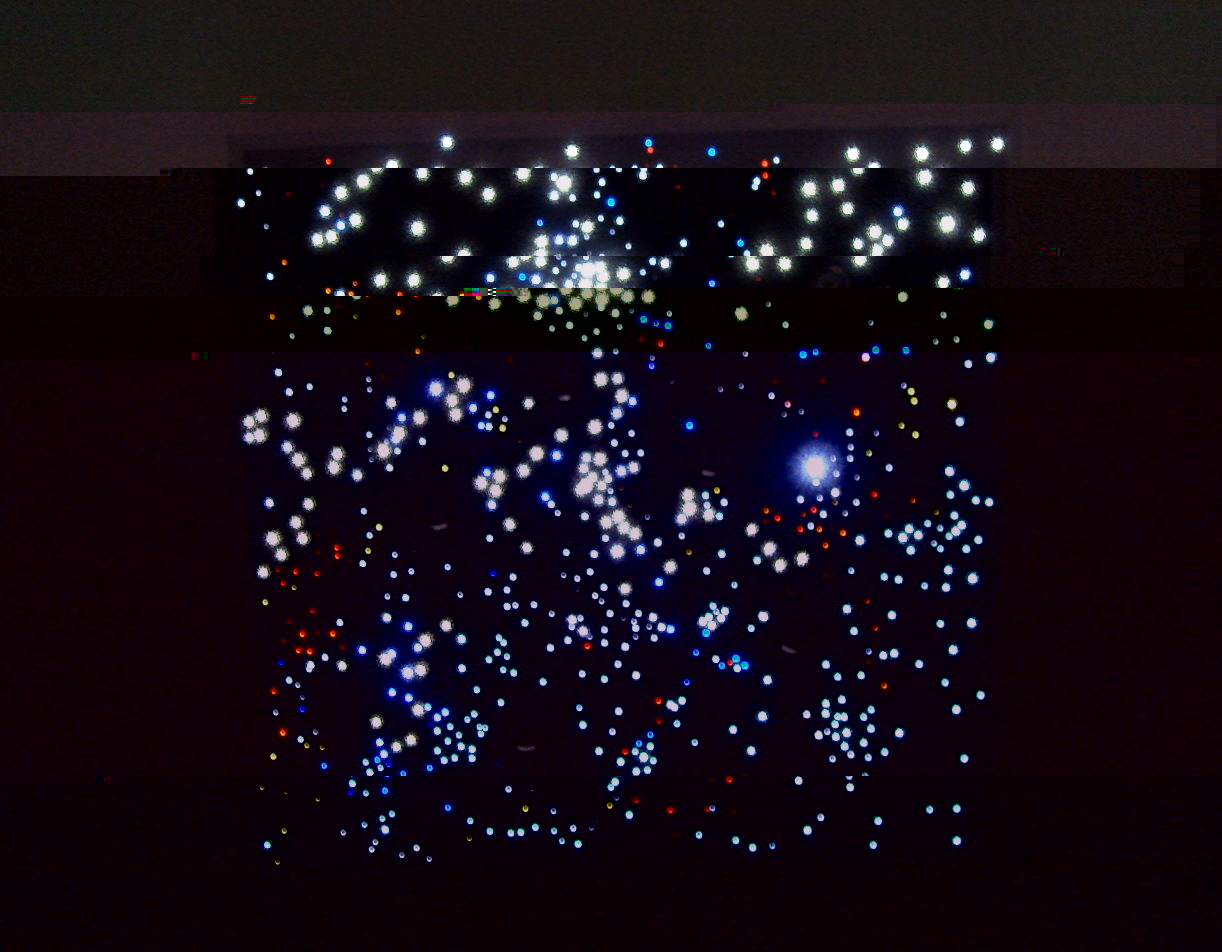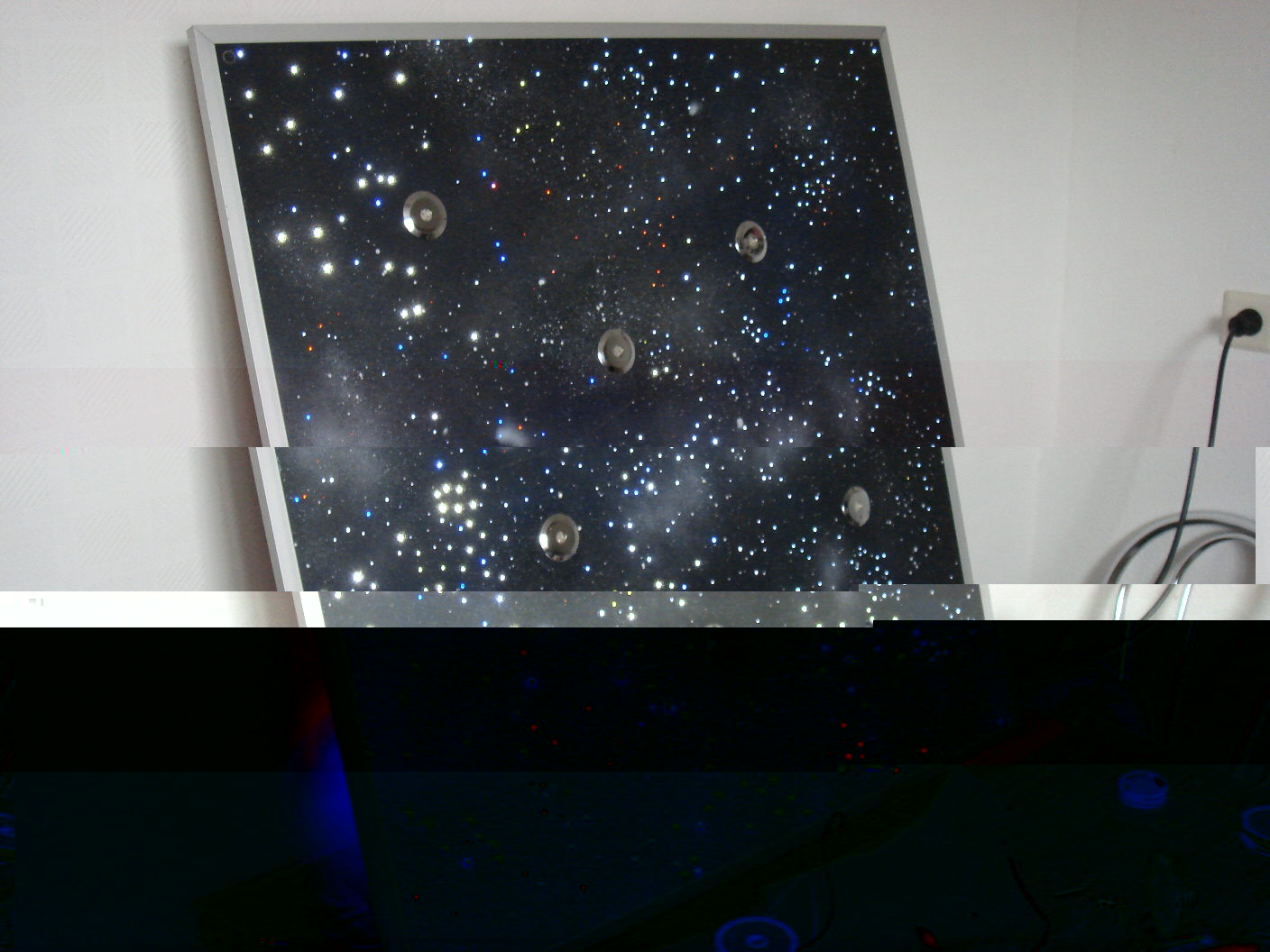 Bin vor nem halben jahr auf dein Video bei youtube gestoßen, da hat mich dein himmel schon umgehauen, habe schon viel drüber nachgedacht und wollt mir nur 1 projektor holen der 480 fasern fasst und extra dazu nen trafo mit leds die dann 5 sternbilder beleuchten, wären dann so 50 leds (mit jeweils einem dimmer dazwichen geschaltet).